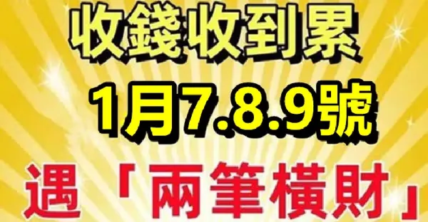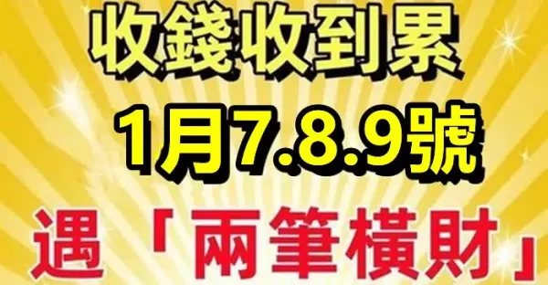 收錢收到累!1月7.8.9號遇「兩筆橫財」日子一順百順的生肖 !
