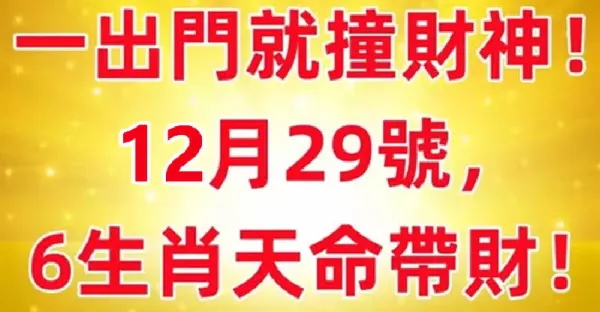 一出門就撞財神!12月29號,六生肖天命帶財!