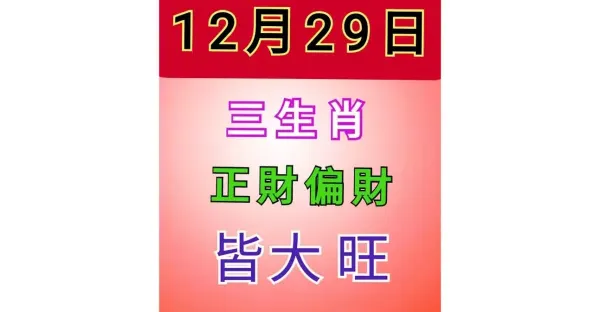 12月29號~31號:接財神 ,迎貴人,接橫財的生肖!