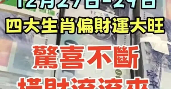 12月27日 到 29日,四大生肖偏財運大旺,驚喜不斷,橫財滾滾來!