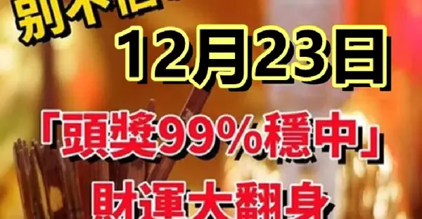 12月23日:「頭獎99%穩中」財運大翻身,發家致富的生肖!