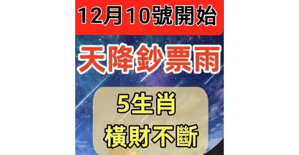 12月10號開始天降鈔票雨,5大生肖橫財不斷!