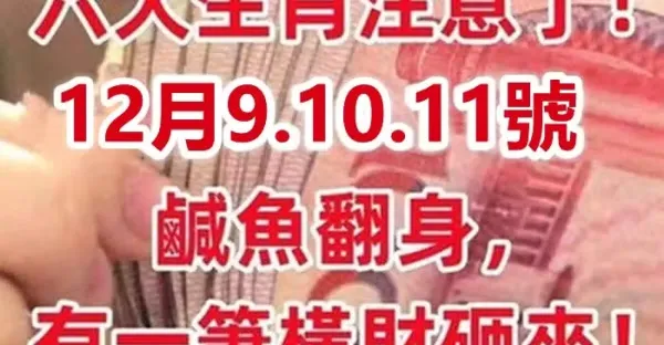 12月9.10.11號鹹魚翻身,有一筆橫財砸來的生肖!