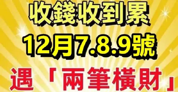 收錢收到累!12月7.8.9號遇「兩筆橫財」日子一順百順的生肖 !
