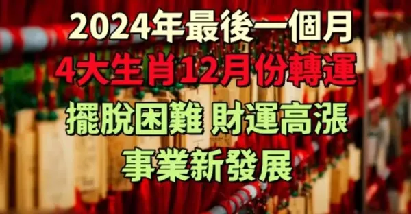 2024年最後一個月,12月份擺脫困難 ,財運高漲,事業新發展,轉運的4大生肖 !
