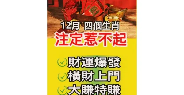 12月:四個生肖註定惹不起!財運爆發,橫財上門,大賺特賺!