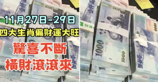 11月27日 到 29日,四大生肖偏財運大旺,驚喜不斷,橫財滾滾來!