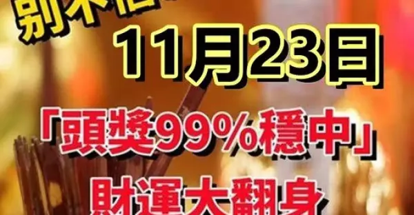 11月23日「頭獎99%穩中」財運大翻身,發家致富的生肖!