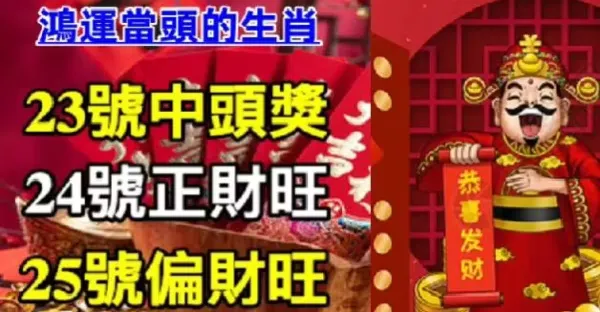 鴻運當頭的生肖:23號中頭獎,24號正財旺,25號偏財旺