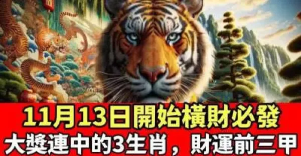 11月13日開始橫財必發,大獎連中的3生肖,財運前三甲