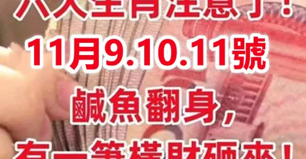 11月9.10.11號鹹魚翻身,有一筆橫財砸來的生肖快來接!