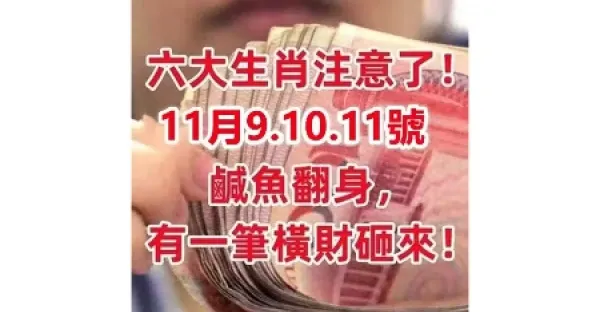11月9.10.11號鹹魚翻身,有一筆橫財砸來的生肖!