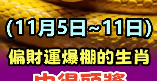 11月4.5.6日:五大生肖 偏財爆棚,喜中大獎!
