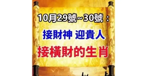 10月29號~30號:接財神 ,迎貴人,接橫財的生肖!