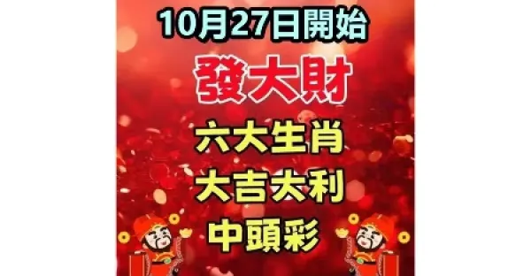 10月27日開始發大財,六大生肖大吉大利中頭彩有你嘛!
