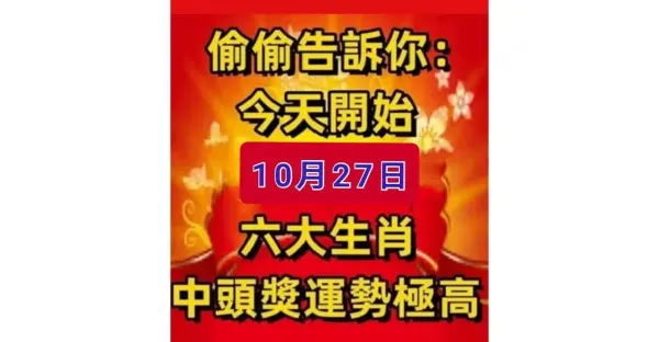 偷偷告訴你:10月27日 今天開始 六大生肖 中頭獎運勢極高!