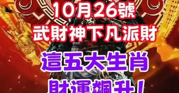 10月26號,武財神下凡派財,這五大生肖財運飆升!快來接財!