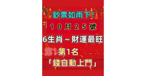 今天中頭獎!10月25號 三生肖 橫財大旺!