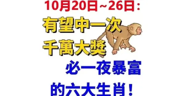 10月20日~26日:有望中一次千萬大獎 ,必一夜暴富的生肖!
