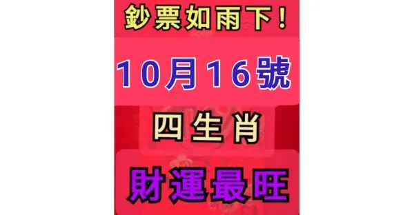 10月16日馬上發橫財,六大生肖開心數鈔票