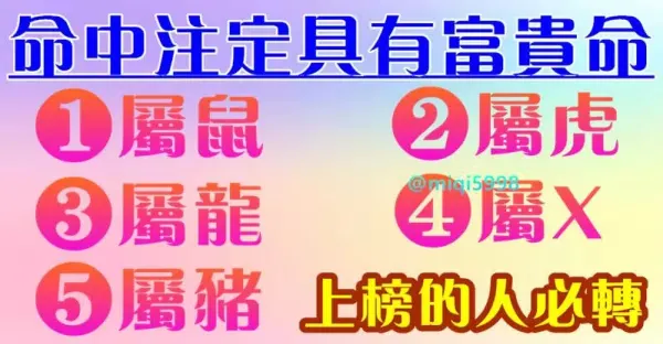 命中注定具有富貴命的五大生肖【有你嗎】