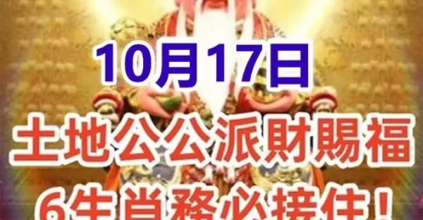 10月17日:土地公公派財賜福,6生肖務必接住!接了就有頭獎中