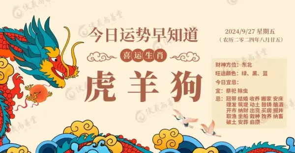 9月27日運勢指南(喜運生肖:虎 羊 狗)
