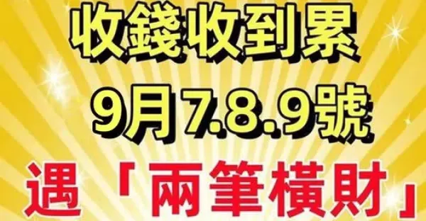 收錢收到累!9月7.8.9號遇「有兩筆橫財」日子一順百順的生肖 !