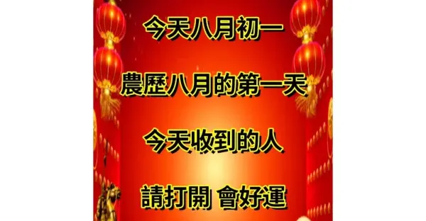 今天八月初一!農曆八月的第一天,今天收到的人請打開!會好運!