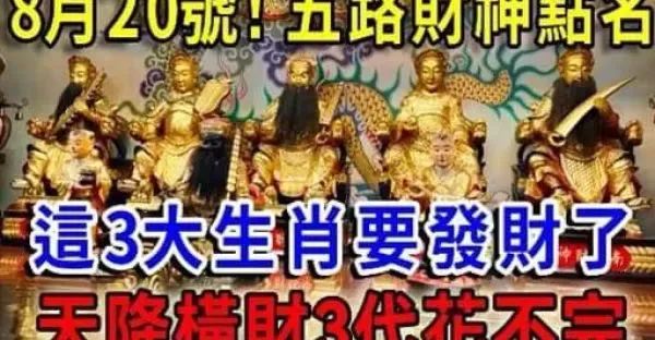 真的來了!8月20號!五路財神爺點名,這5大生肖要發大財了,天降橫財3代花不完,往後要財運亨通一輩子了