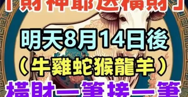 「財神爺送橫財」!明天8月14日後,橫財一筆接一筆的生肖