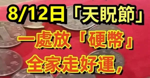 就在今天!8/12日「天眖節」一處放「硬幣」全家走好運,財運旺旺來!