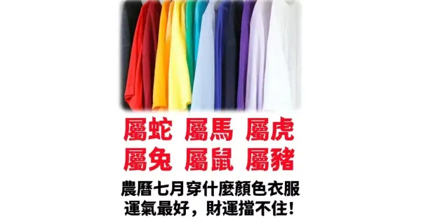 「屬蛇、馬、虎、兔、鼠、豬人 」農曆七月穿什麼顏色衣服運氣最好,財運擋不住,財運順順來!