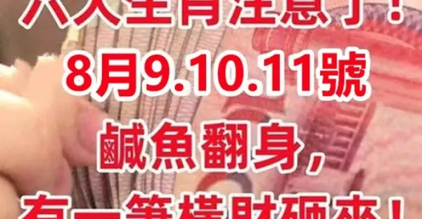 8月9.10.11號鹹魚翻身,有一筆橫財砸來的生肖!