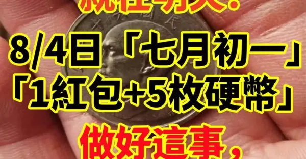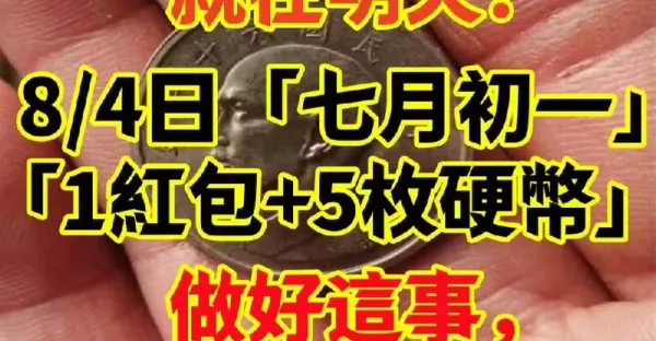 就在明天! 8/4日「七月初一」準備「1個紅包+5枚硬幣」做好這事,招橫財走好運哦!
