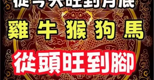 從今天旺到月底生肖(雞牛猴狗馬)從頭旺到腳,準備數錢吧