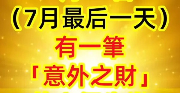 7月31日(7月的最後一天)有一筆「意外之財」的六個生肖