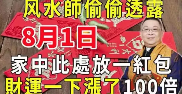 風水師偷偷透露:8月1日在家中這個地方,放一個紅包,竟能讓財運100倍暴漲,好運一路旺到底!