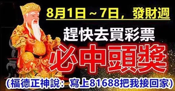 8月1日~7日發財周,趕快去買彩票,中獎機率即高的生肖.