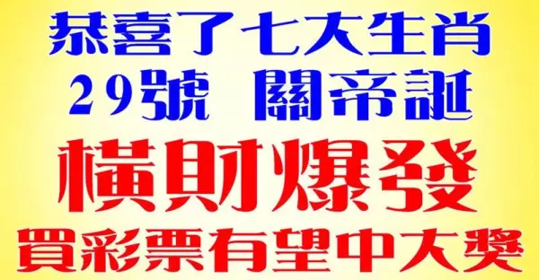 農曆六月廿四(關帝誕)開始橫財爆發,買彩票有望中大獎的生肖