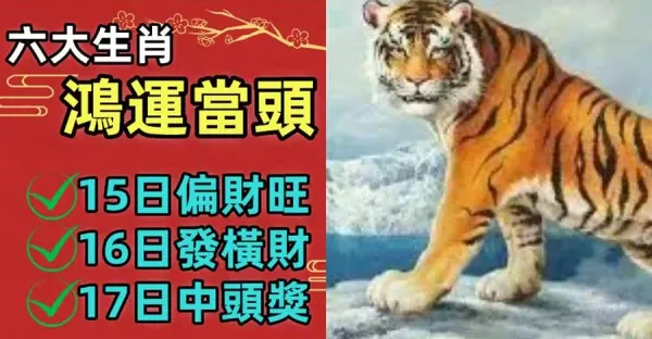 六大生肖:15號逢獎必中,16號抬頭見喜,17號低頭撿錢