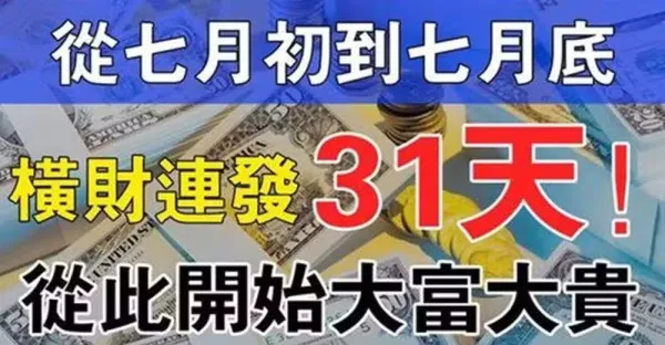 從七月初到七月底橫財連發31天,從此開始大富大貴的生肖有你嘛