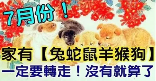 7月份家裡有生肖(兔蛇鼠羊猴狗)一定要轉走,沒有就算了
