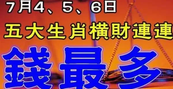 7月4、5、6日橫財連連來,五大生肖錢最多