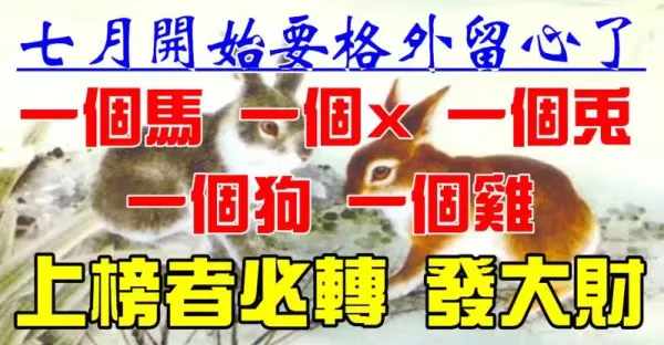七月份要格外留心了,一個馬,一個X,一個兔,一個狗,一個雞必須轉啊