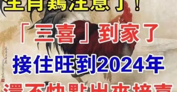 生肖雞!2024年有三大喜事!屬雞的人將被大喜纏身!家裡有屬相雞的快來接喜!接住正財橫財一起來!