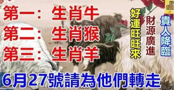 你身邊有生肖屬牛,猴,羊的人嗎?6月27號請為他們轉走