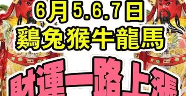 6月5.6.7日生肖(雞兔猴牛龍馬)財運將一路上漲