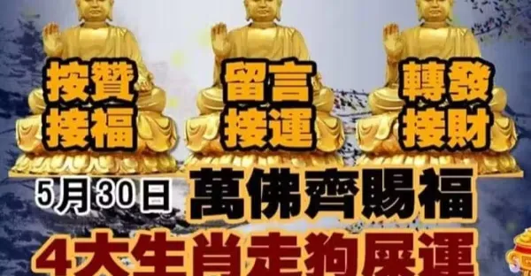5月30日萬佛齊賜福,四大生肖走狗屎運