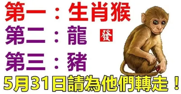 生肖(猴,龍,豬)5月31日請為他們轉走